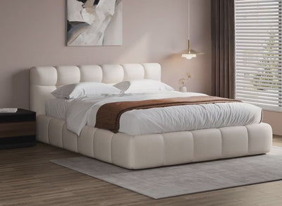 Lit double en tissu bouclette écru 140x190 cm GEORGINA Lit double en tissu bouclette écru 140x190 cm GEORGINA