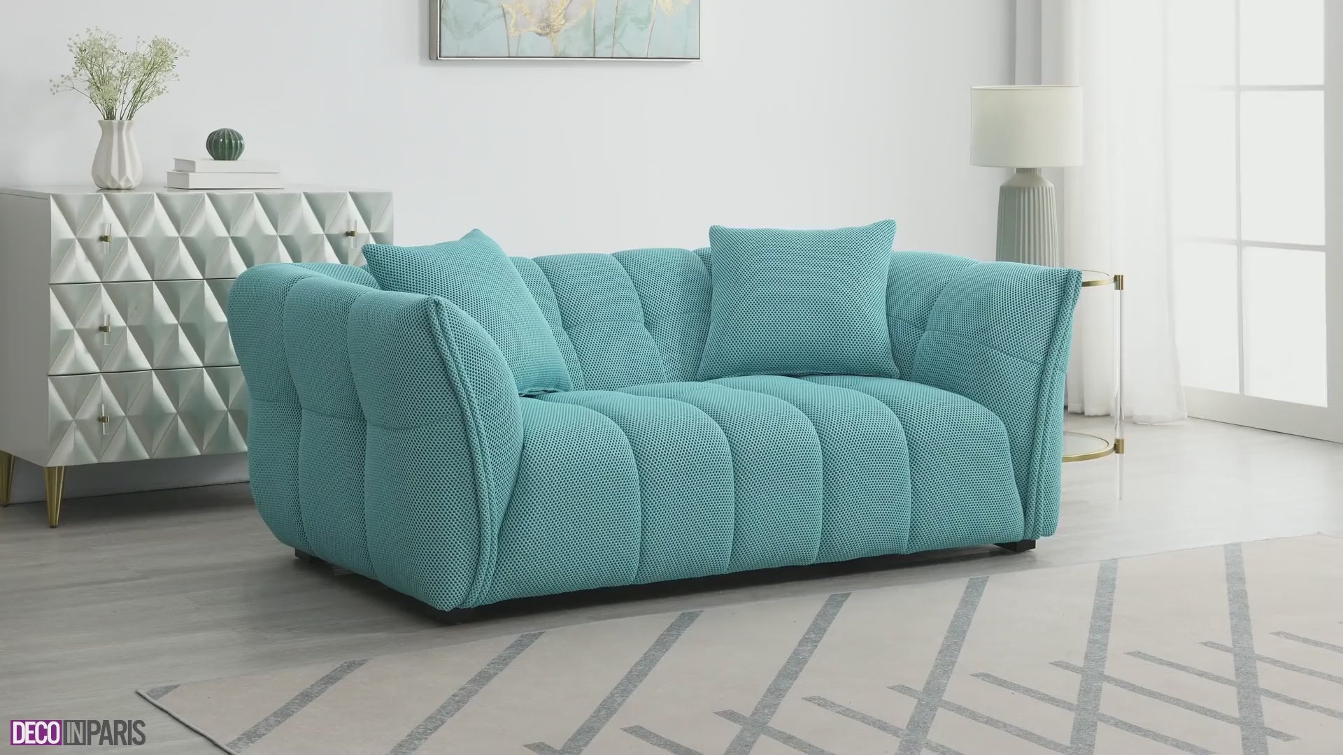 Transformez votre salon en un espace cocooning avec notre canapé 2 places en tissu 3D vert d'eau ELENA !
