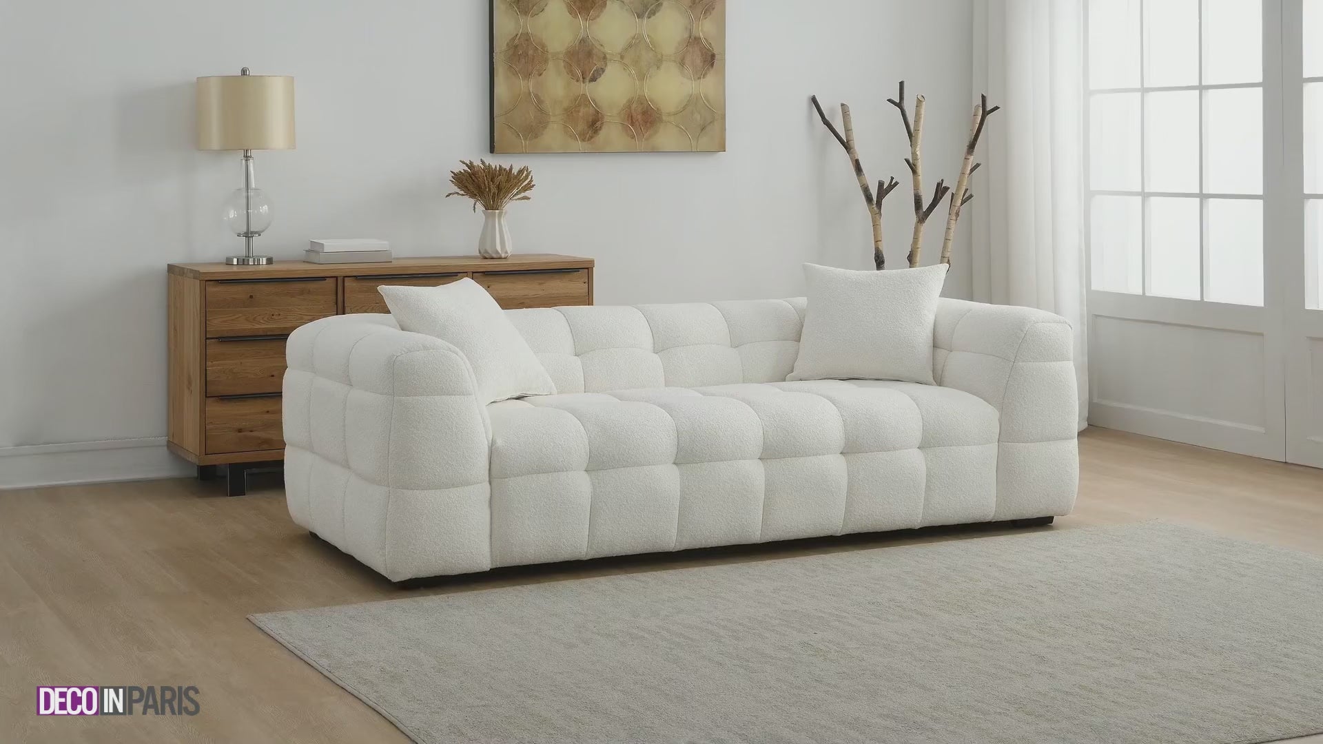 Canapé fixe 3 places effet peau de mouton blanc écru BELLA