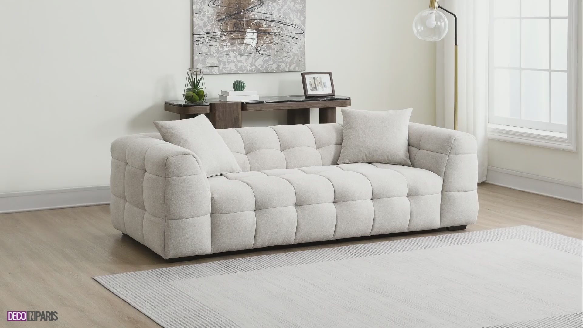 Notre canapé design 3 place en tissu beige BELLA deviendra la pièce maîtresse de votre salon. Son design moderne et épuré apportera une touche d'élégance à votre décoration intérieure. Avec ses courbes bombées et ses finitions soignées, ce canapé 3 places s'intègrera parfaitement à tous les styles d'intérieur en passant du plus classique au plus moderne.
