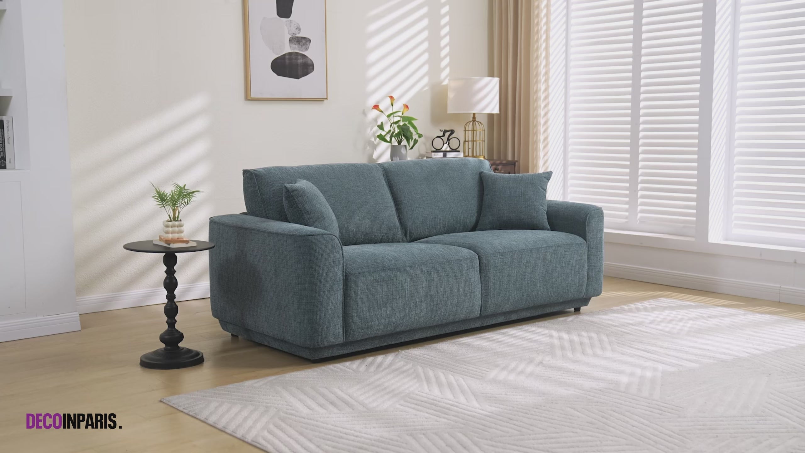 Canapé 3 places en velours chiné bleu CARLOTA - DécoInParis