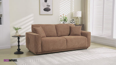 Son revêtement en velours chiné au toucher délicat et à l’aspect légèrement texturé apporte une note chaleureuse et lumineuse à votre intérieur. Sa teinte terracotta, à la fois sobre et élégante, s’adapte facilement à tous les styles de décoration, du contemporain au plus classique.