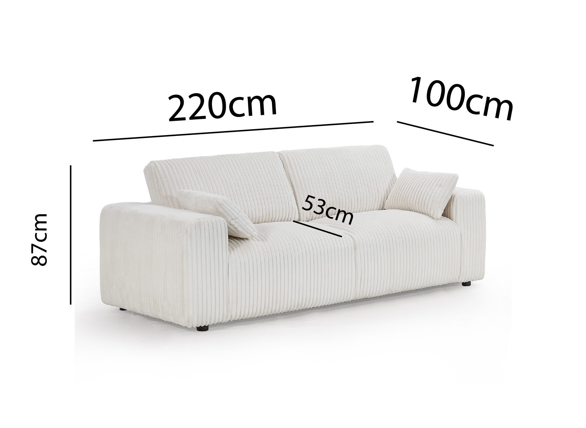 Doté de larges accoudoirs et de coussins généreux, ce canapé 3 places garantit un confort optimal pour vos moments de détente. Le revêtement en velours côtelé est non seulement élégant, mais aussi durable et facile à entretenir. Les lignes épurées et l'aspect luxueux de ce tissu texturé en font un choix parfait pour ceux qui recherchent à la fois style et confort.