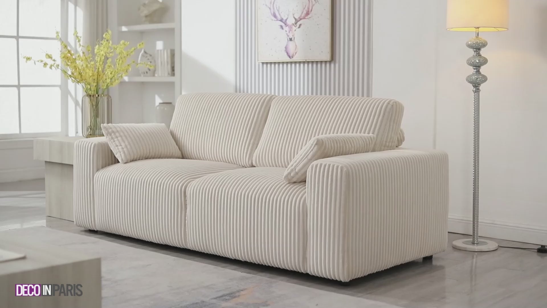 Apportez une touche de raffinement à votre salon avec ce canapé 3 places en velours côtelé épais beige INAM.