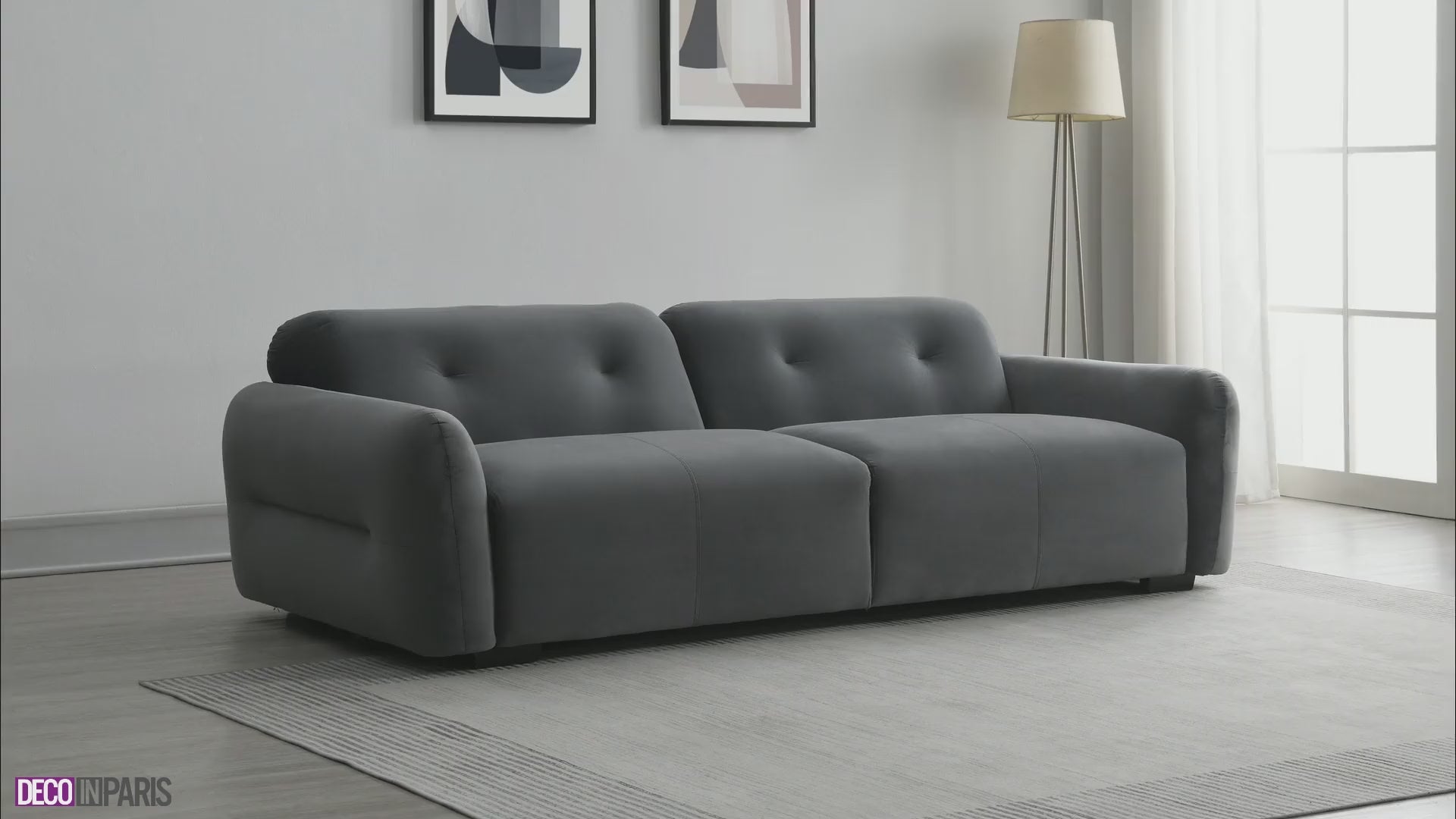 Choisissez dès maintenant le style original et le confort ultime de notre canapé 3 places en velours gris PICASSO !