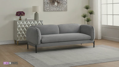 Le canapé ANDREA habillera d'une élégance parfaite votre coin salon avec ses lignes épurées, rehaussées par des pieds fins en métal noir, créant une réelle harmonie avec son doux revêtement en velours. Grâce à son design et ses couleurs intemporels, le canapé 3 places ANDREA s'intègrera harmonieusement dans tous les styles de décoration, en passant du plus classique au plus moderne. Redéfinissez le caractère de votre pièce à vivre avec cette pièce maîtresse raffinée et tendance.