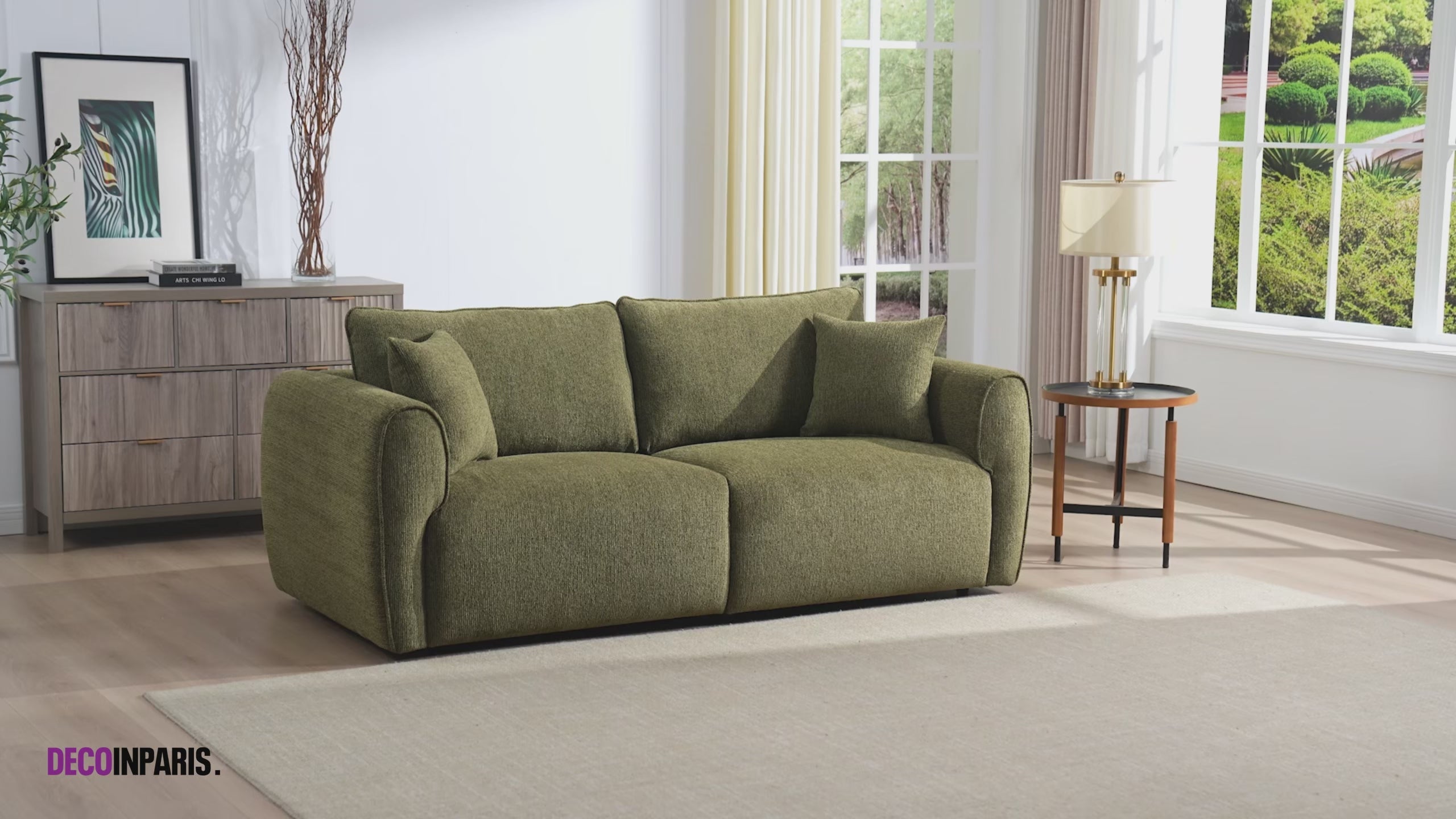 Canapé 3 places en velours texturé vert olive NALYA