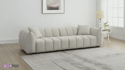 Vous avez envie de nouveauté au sein de votre intérieur ? Découvrez le canapé 4 places en tissu beige ALISSA !