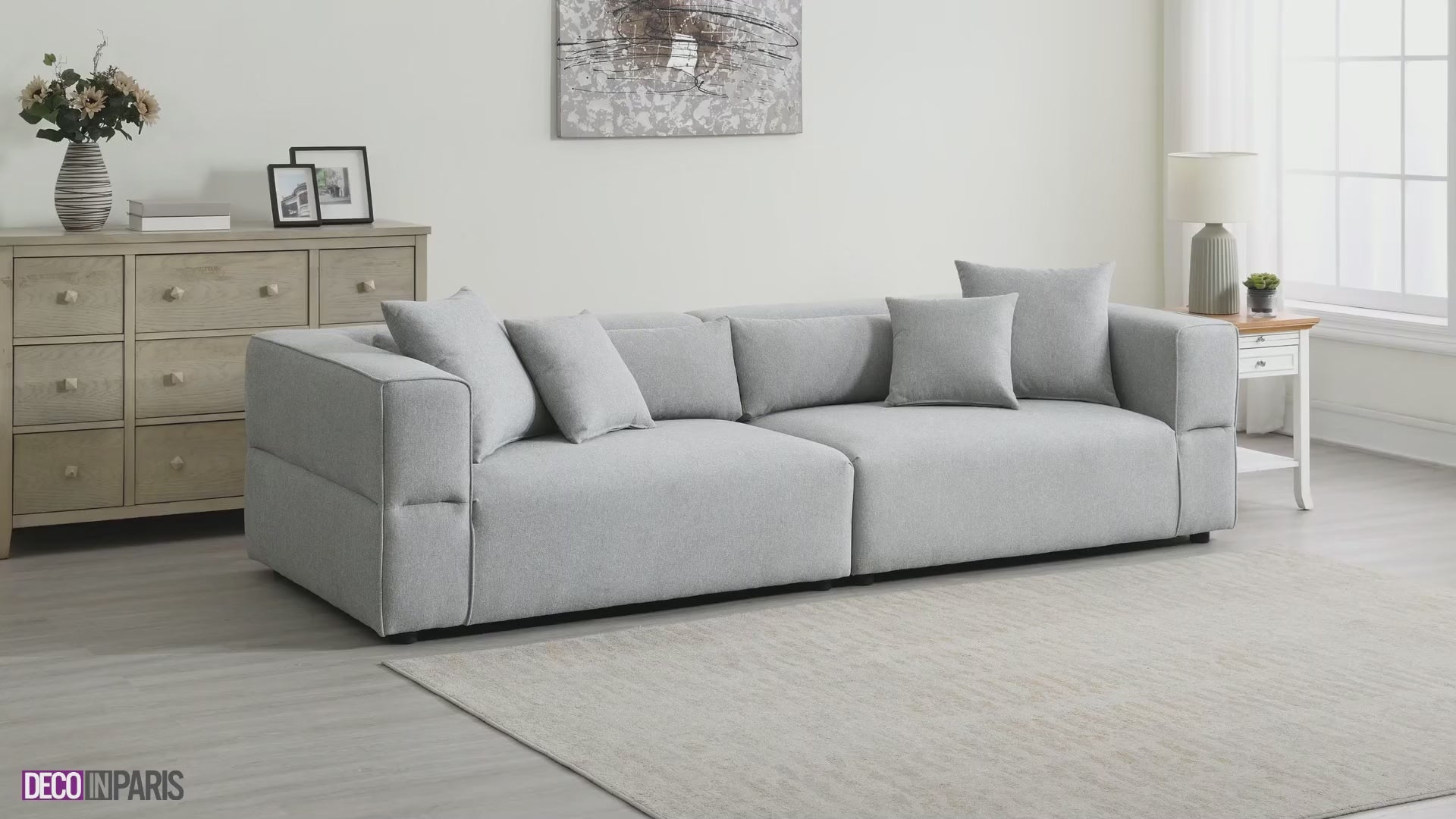 Canapé fixe 4 places en tissu gris EVELYNE