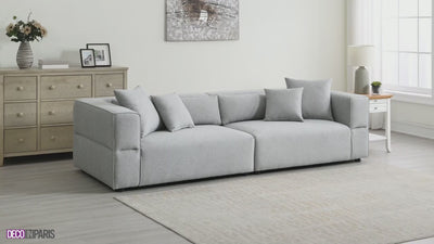 Une alliance entre confort et design, le canapé 4 places en tissu gris EVELYNE est parfait pour votre salon !