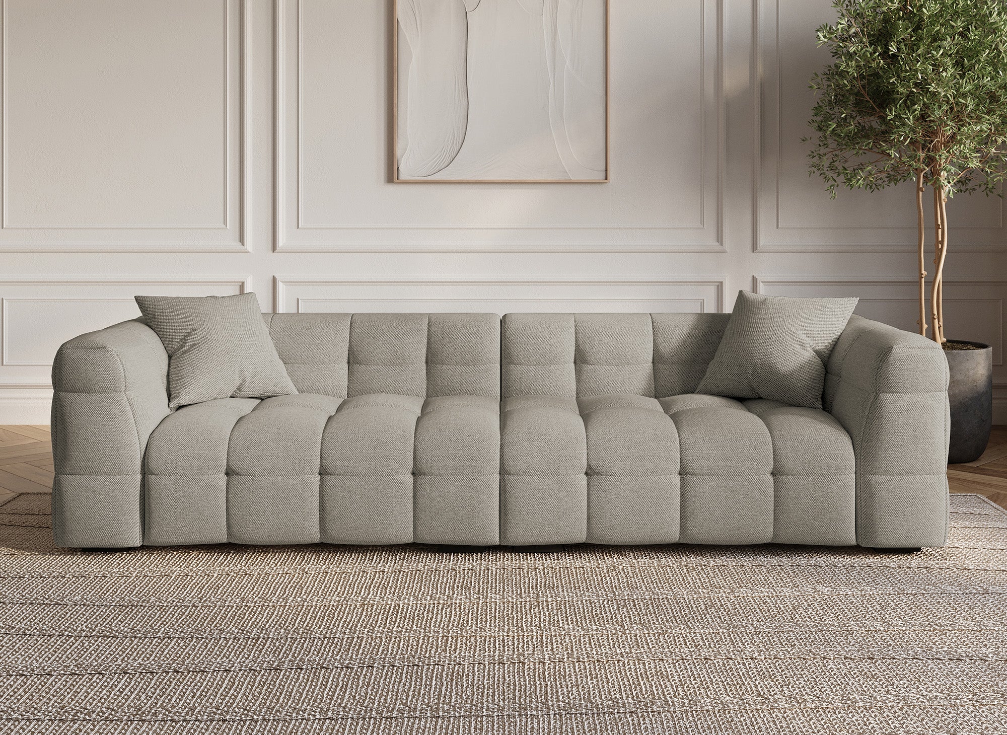 Notre canapé design 4 place en tissu taupe BELLA deviendra la pièce maîtresse de votre salon. Son design moderne et épuré apportera une touche d'élégance à votre décoration intérieure. Avec ses courbes bombées et ses finitions soignées, ce canapé 3 places s'intègrera parfaitement à tous les styles d'intérieur en passant du plus classique au plus moderne.