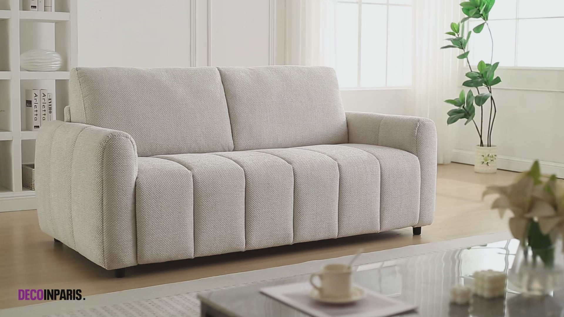 Canapé convertible express 3 places en tissu beige ISANDRO