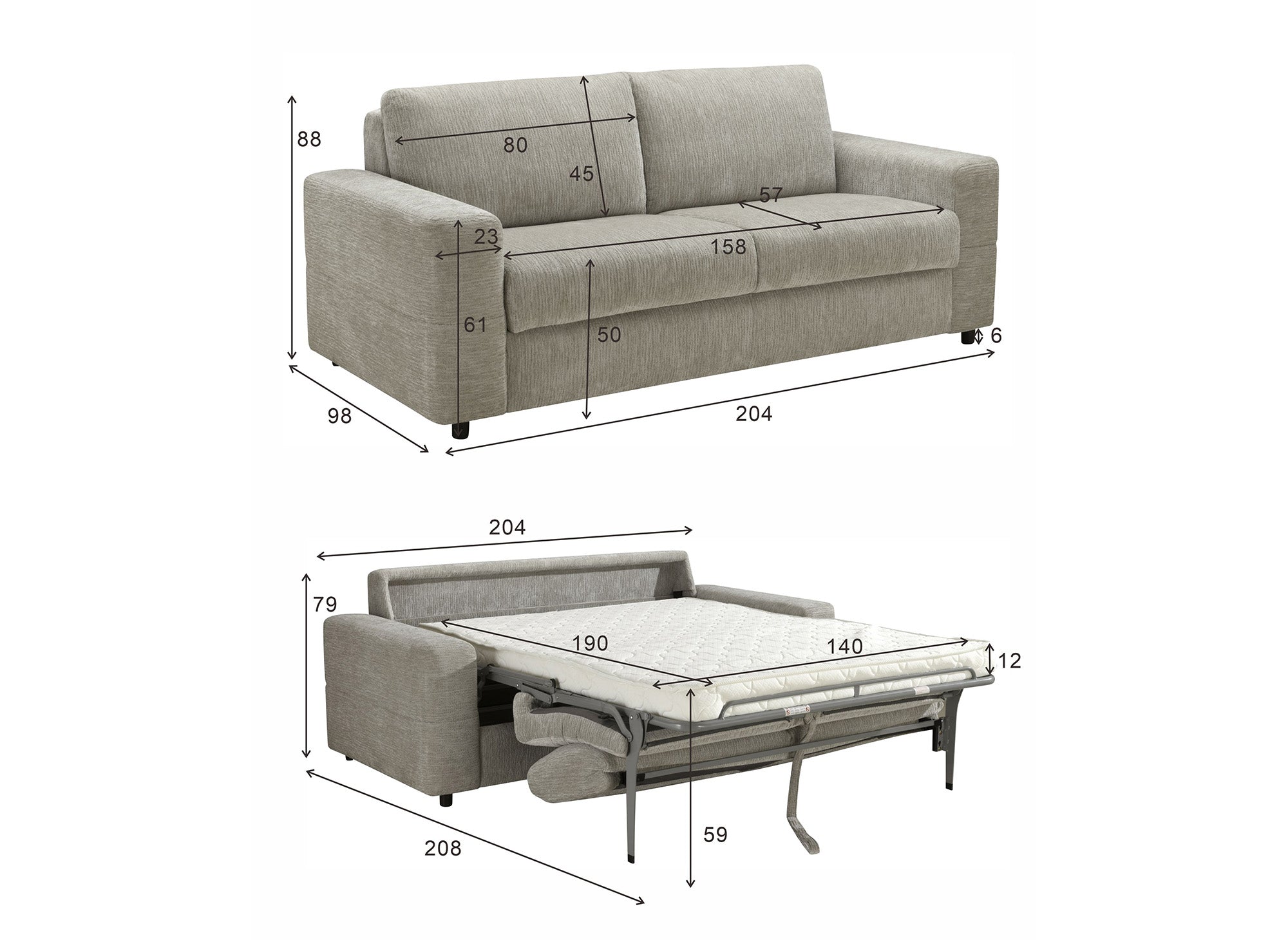 Canapé convertible express 3 places en velours chiné gris foncé AMAURY