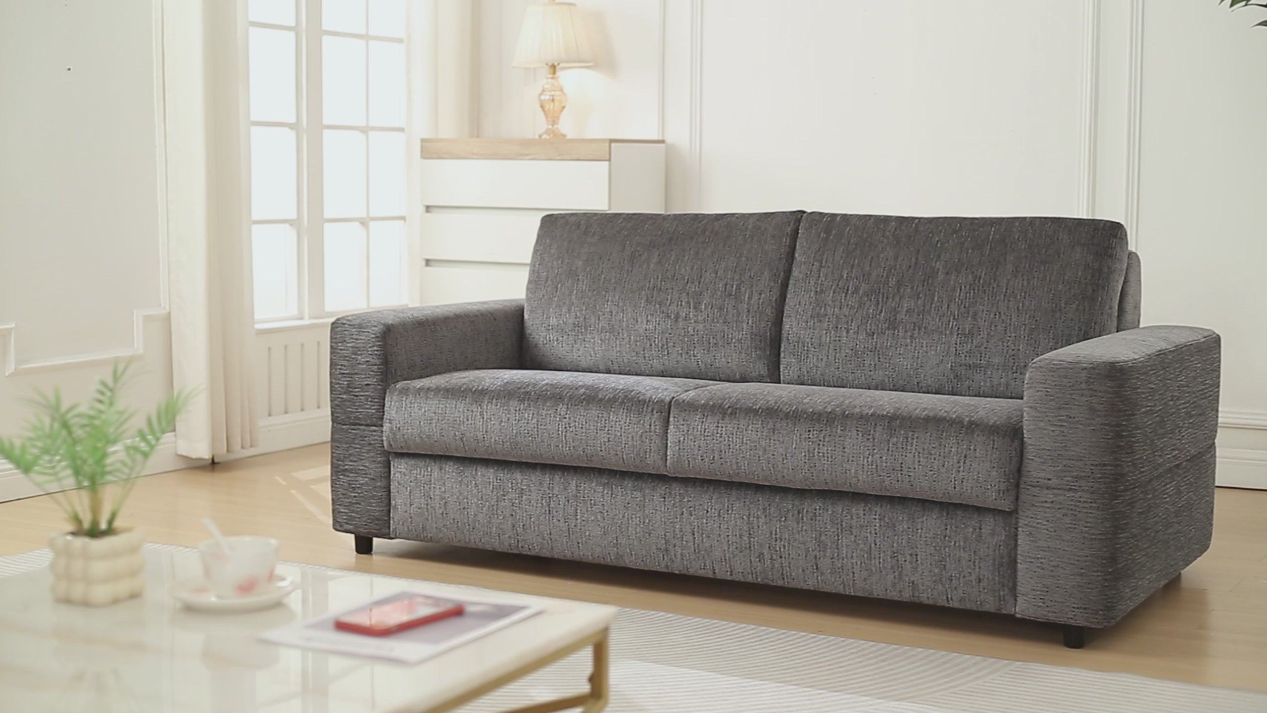 Canapé convertible 3 places en velours chiné gris foncé AMAURY