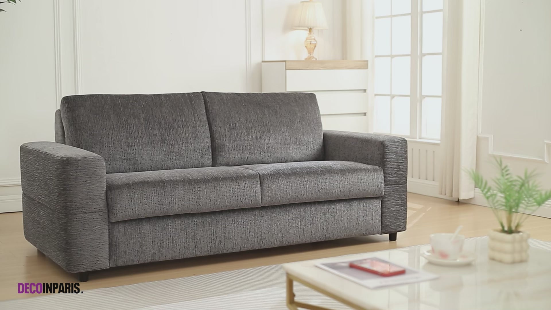 Canapé convertible express 3 places en velours chiné gris foncé AMAURY Prix de vente639,00 € Prix normal949,00 € - 33%