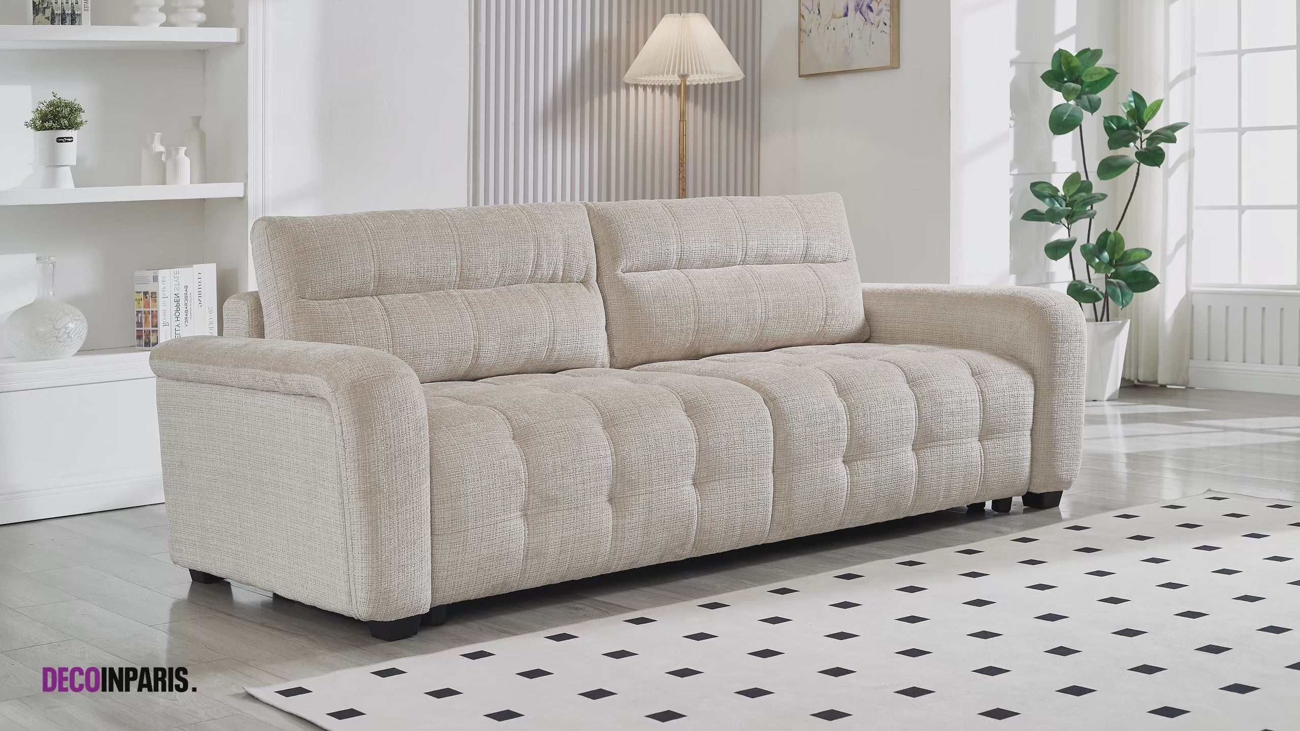 Canapé convertible avec coffre 3 places en velours chiné beige RALYA - DécoInParis