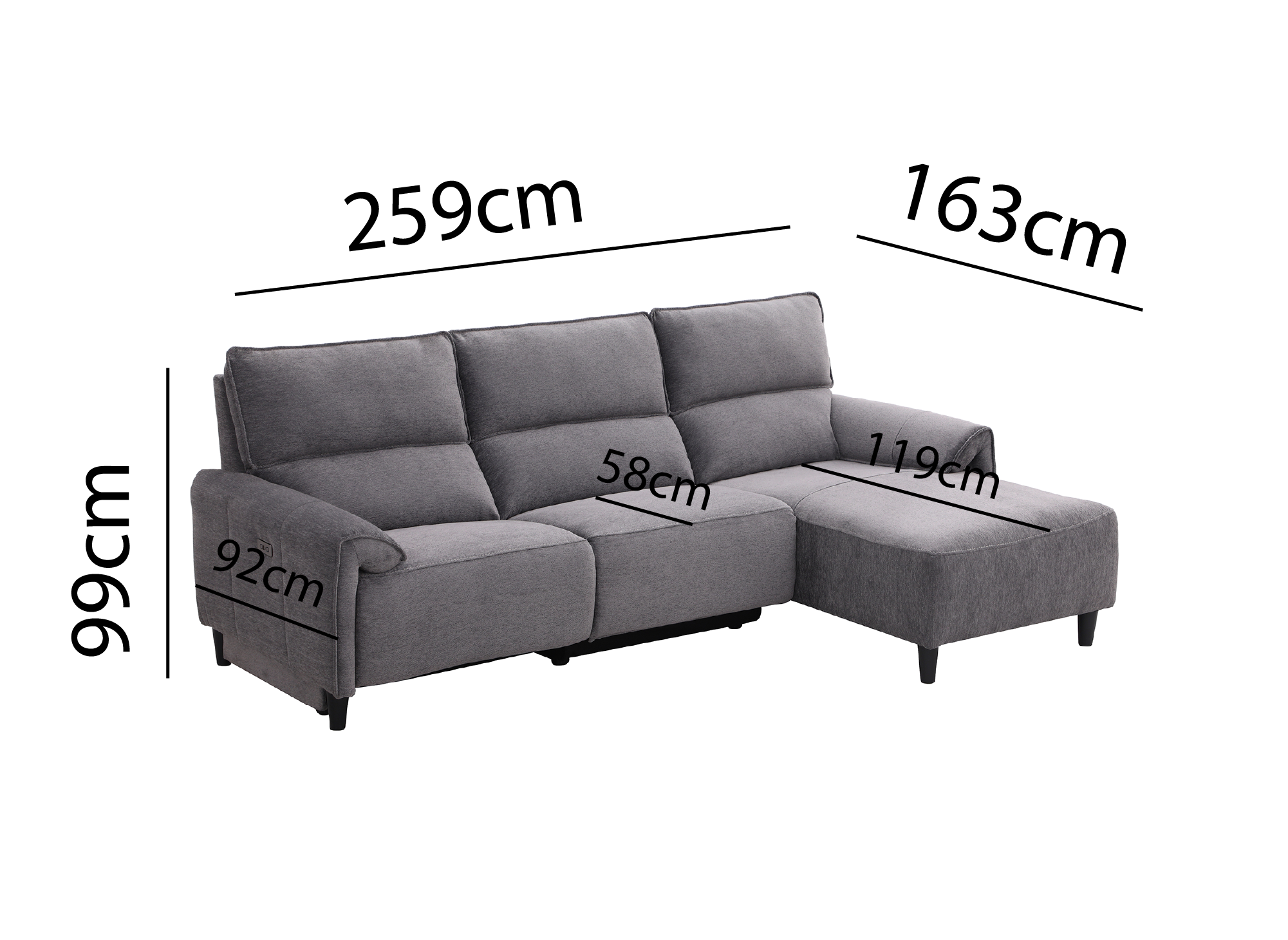 Canapé d’angle relax électrique en tissu gris foncé LUDMILA - Angle droit