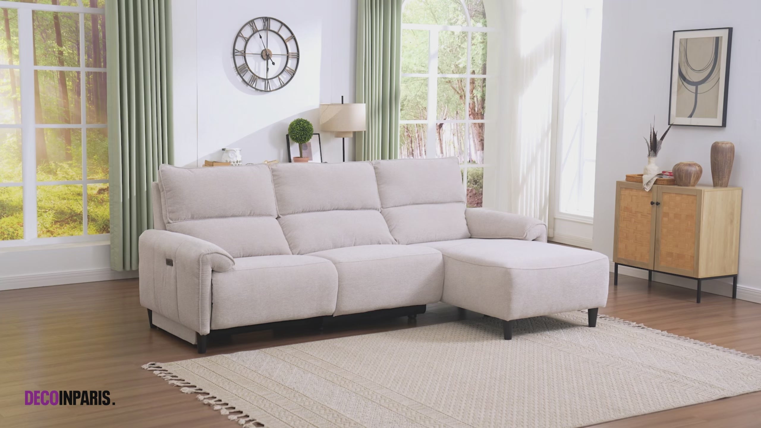 Son dossier moelleux et son revêtement en tissu doux offrent un accueil agréable, tandis que la méridienne vous invite à vous allonger et à profiter d’un vrai moment de bien-être.