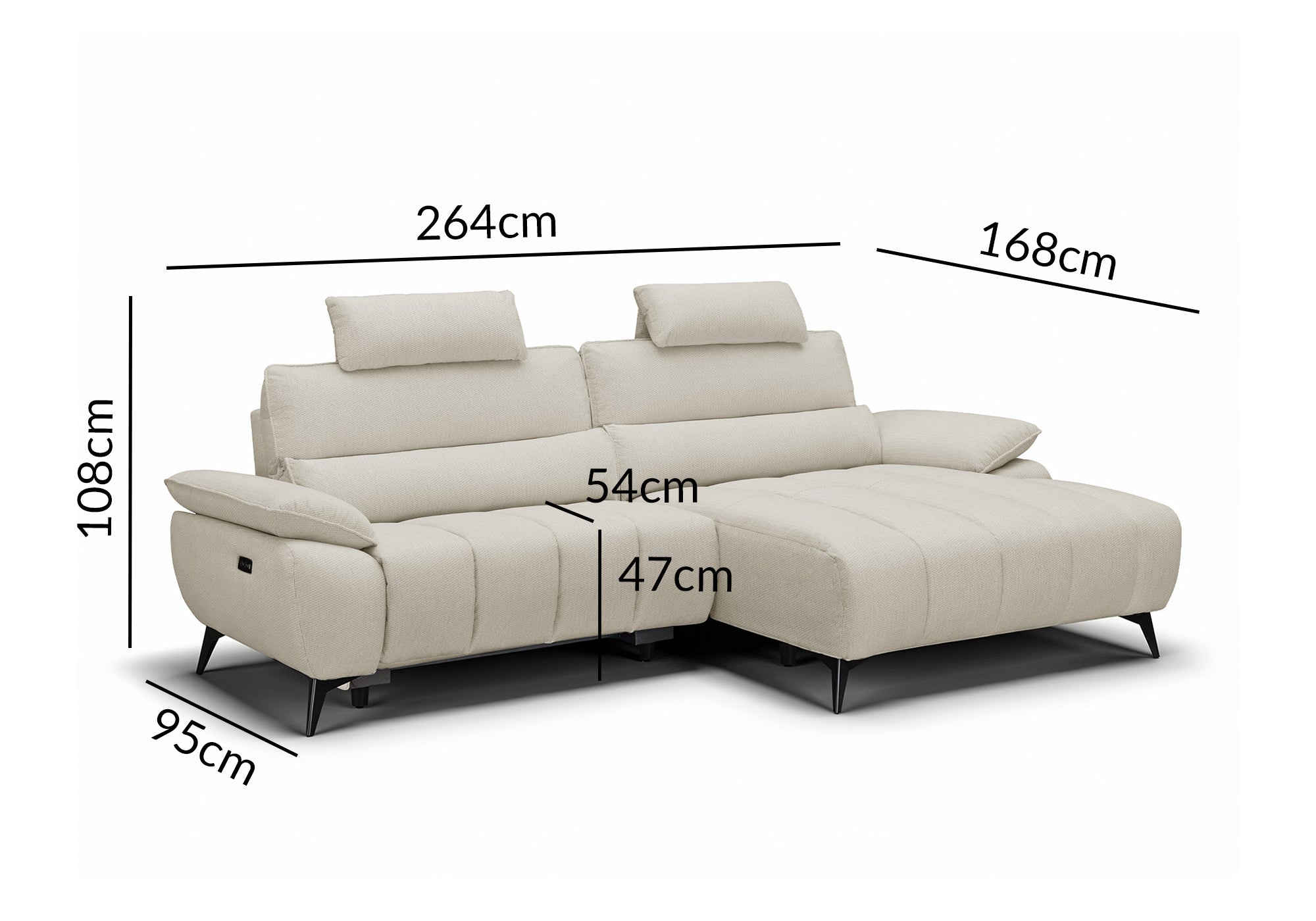 Canapé d’angle relax électrique en velours chiné beige LYANA - Angle droit