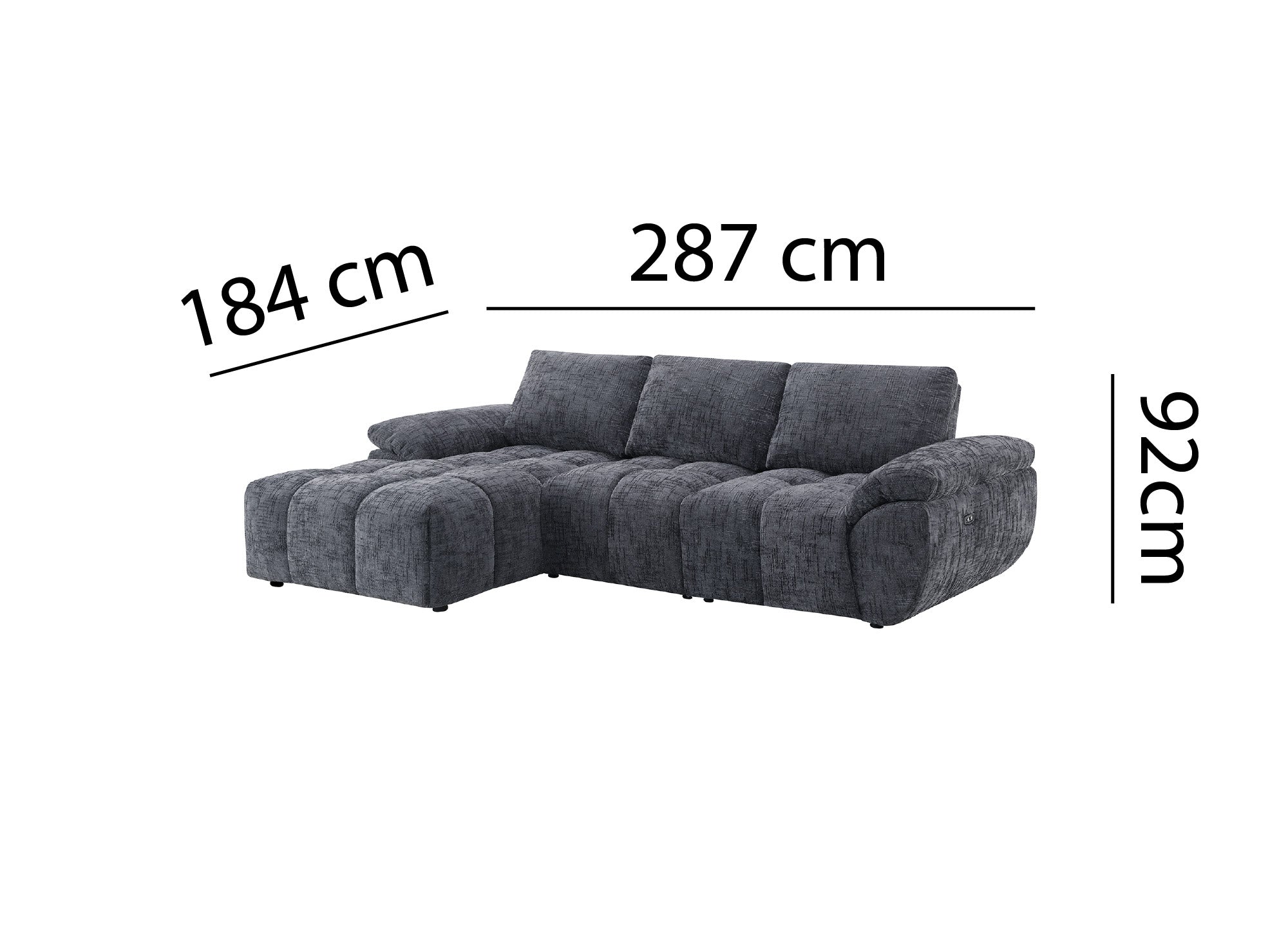 Le canapé d’angle relax électrique en velours chiné gris ALPES allie avec élégance confort et design contemporain. Grâce à son assise généreuse, ses formes arrondies et son revêtement en velours chiné texturé, il apporte une touche chaleureuse, moderne et raffinée à votre salon.