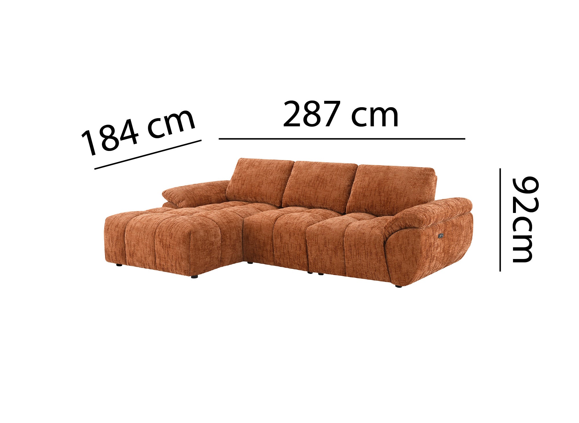Canapé d’angle relax électrique en velours chiné terracotta ALPES - Angle gauche