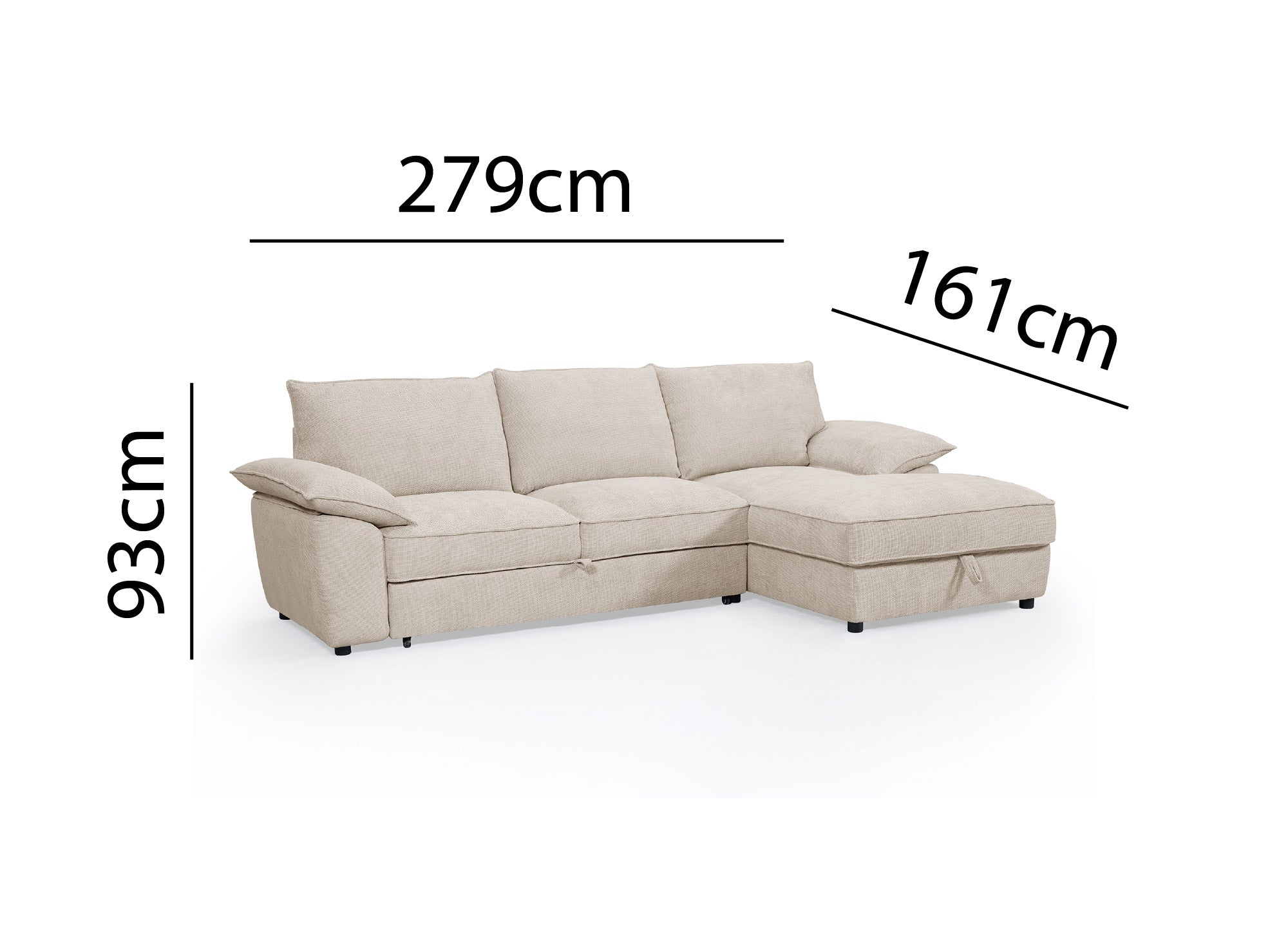 Son atout supplémentaire ? Un coffre de rangement discret intégré sous l’assise, idéal pour y stocker vos couvertures, coussins ou tout autre accessoire, permettant ainsi de maximiser votre espace sans compromis sur le style. Le canapé se transforme facilement en lit, offrant une solution pratique pour vos invités.