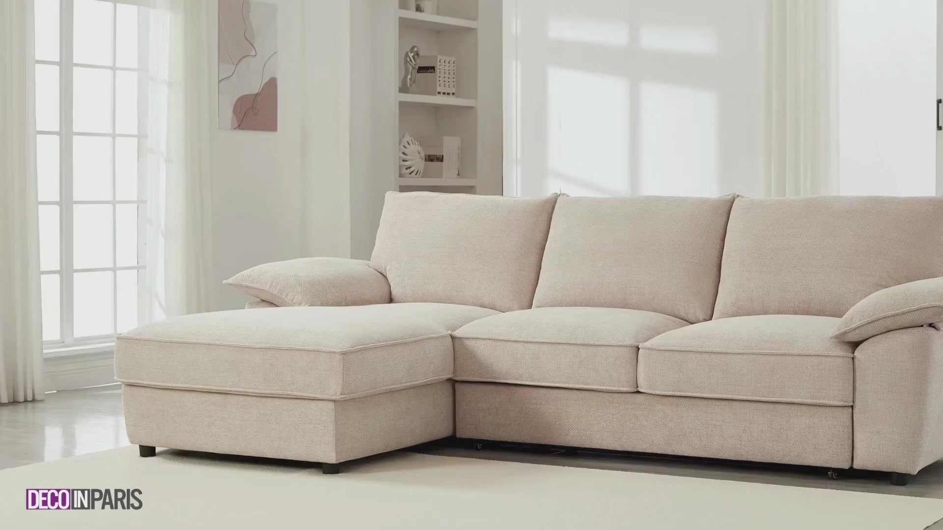 Conçu pour allier confort, praticité et optimisation de l’espace, il se distingue par son revêtement en velours chiné doux et résistant, parfait pour un usage quotidien tout en ajoutant une texture élégante à votre intérieur. Ce canapé d’angle offre une solution de couchage supplémentaire en un clin d’œil, transformant votre pièce à vivre en un espace accueillant pour vos invités.