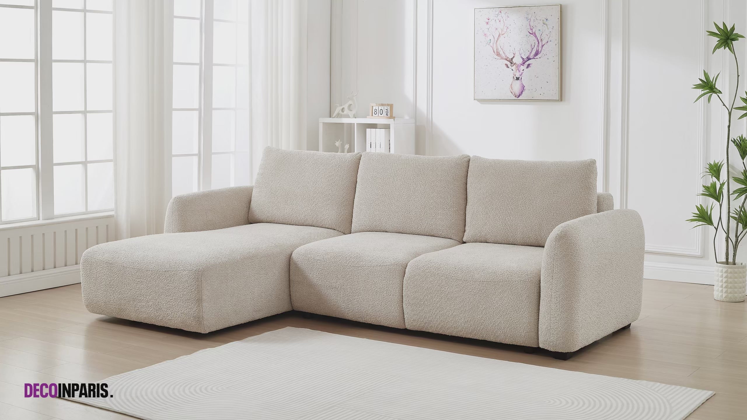 Canapé d'angle convertible avec coffre en tissu bouclette beige MARLA - Angle gauche