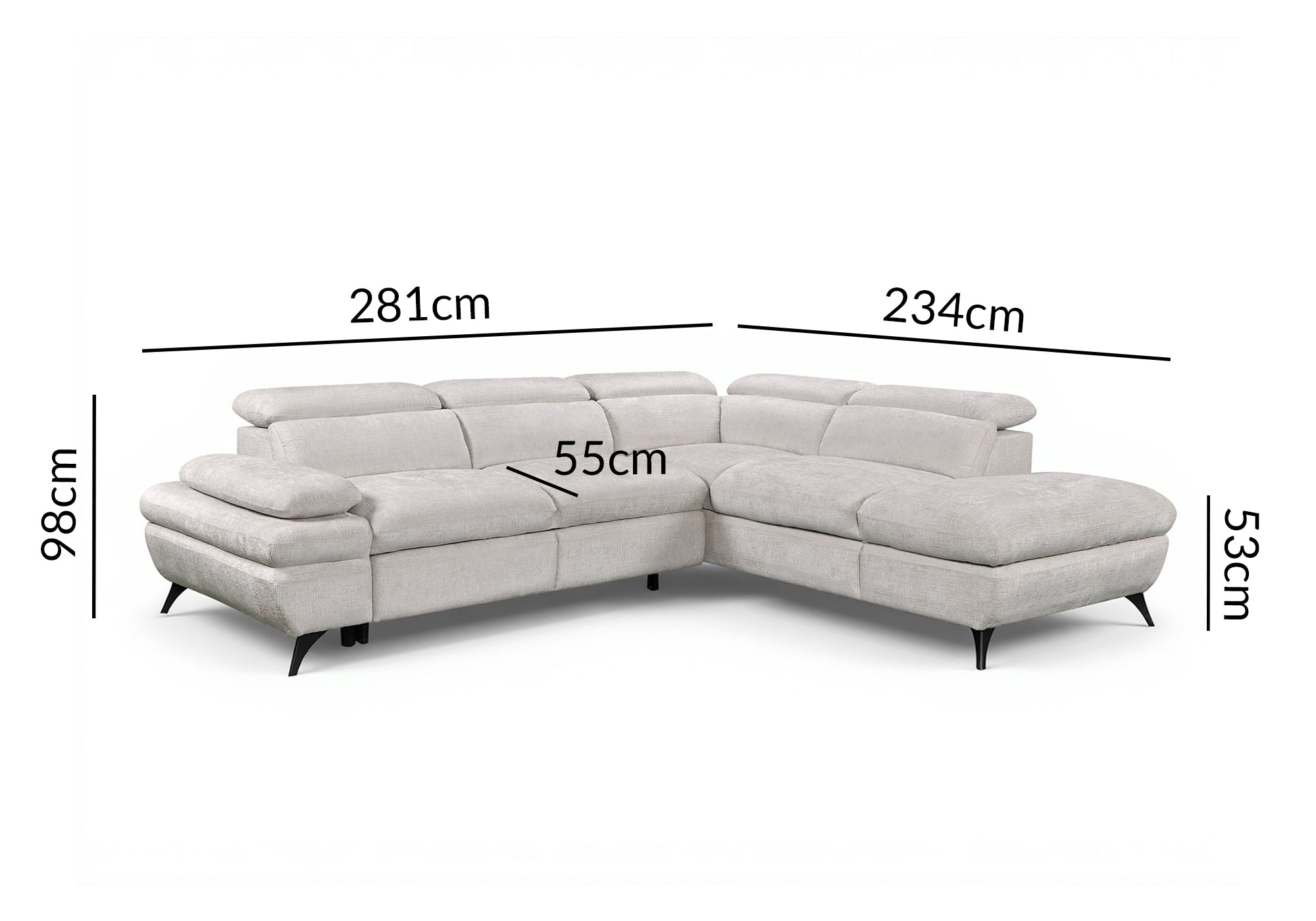 Canapé d'angle convertible avec coffre en velours chiné blanc écru LUFY - Angle droit