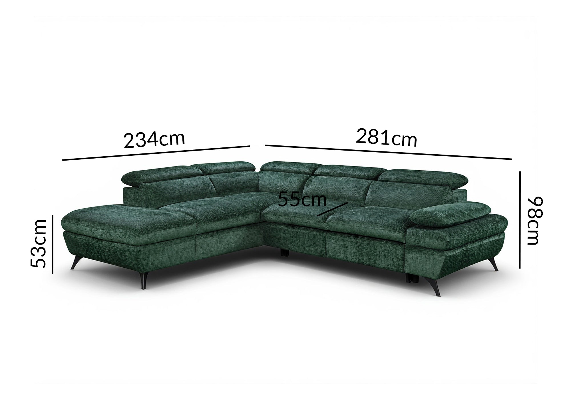 Canapé d'angle convertible avec coffre en velours chiné vert LUFY - Angle gauche