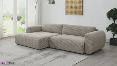 Faites de votre salon un espace chaleureux et accueillant avec le canapé d'angle convertible TILDA en velours côtelé épais, la solution idéale pour allier élégance, confort et praticité.