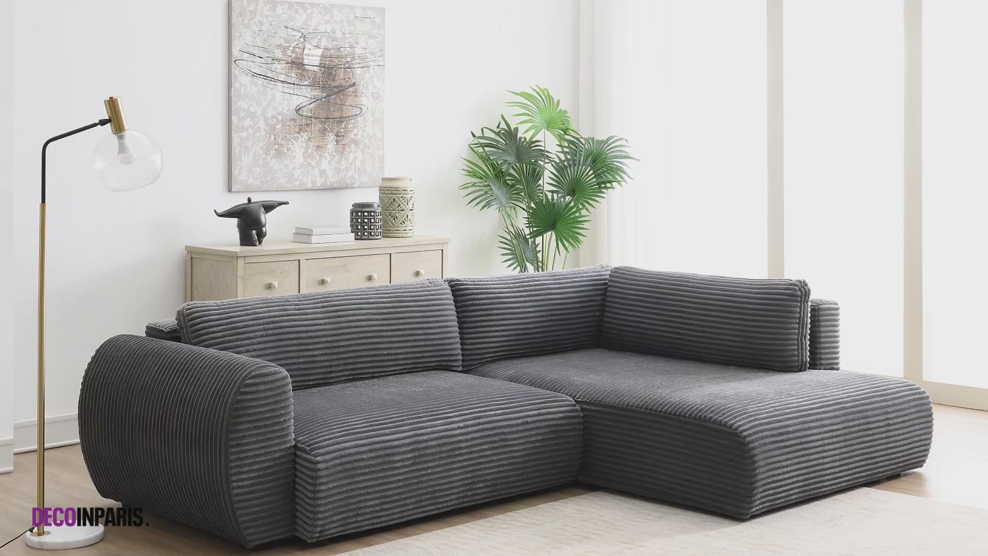 Le canapé d'angle convertible TILDA en velours côtelé gris est donc l'alliance parfaite de confort, élégance et praticité, transformant votre salon en un espace à la fois accueillant et sophistiqué.