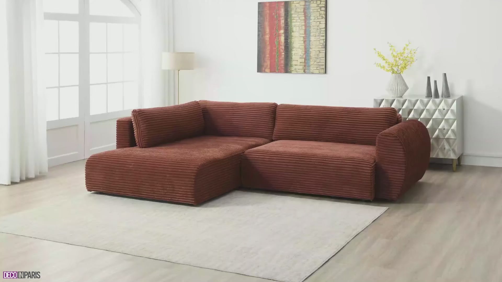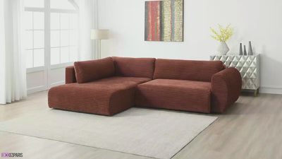 Le canapé d'angle convertible TILDA en velours côtelé terracotta est donc l'alliance parfaite de confort, élégance et praticité, transformant votre salon en un espace à la fois accueillant et sophistiqué.