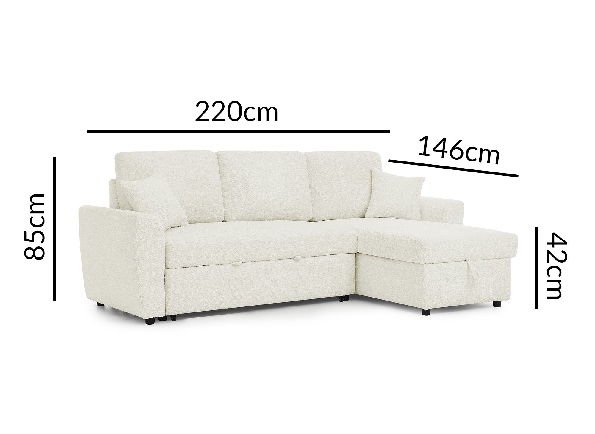 Canapé d'angle convertible et réversible avec coffre en tissu bouclette beige ADRYEN