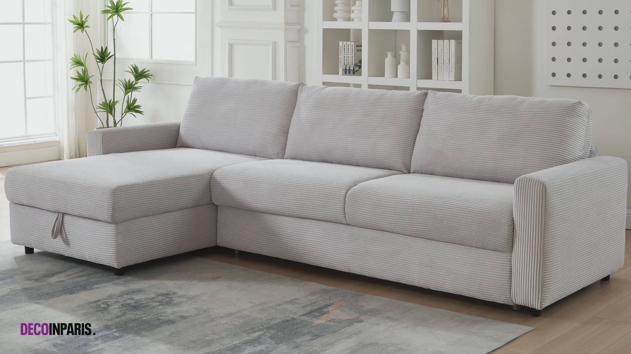Canapé d'angle convertible et réversible ouverture express en velours côtelé gris JULIETTE