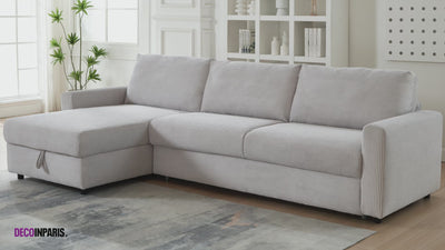 Pratique et bien pensé, il dispose d’un coffre de rangement intégré dans la méridienne, idéal pour stocker oreillers, couettes ou plaids en toute discrétion.