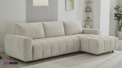 Canapé d'angle convertible ouverture express en tissu beige AGATHE - Angle droit - DécoInParis