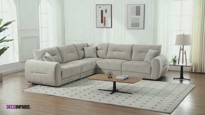 Grâce à sa forme d’angle généreuse, il offre un vaste espace pour se relaxer, accueillir famille et amis ou simplement profiter d’un moment de calme. Son assise moelleuse et ses dossiers légèrement capitonnés assurent un confort optimal, tandis que ses lignes arrondies et ses accoudoirs épais soulignent son allure contemporaine et accueillante.