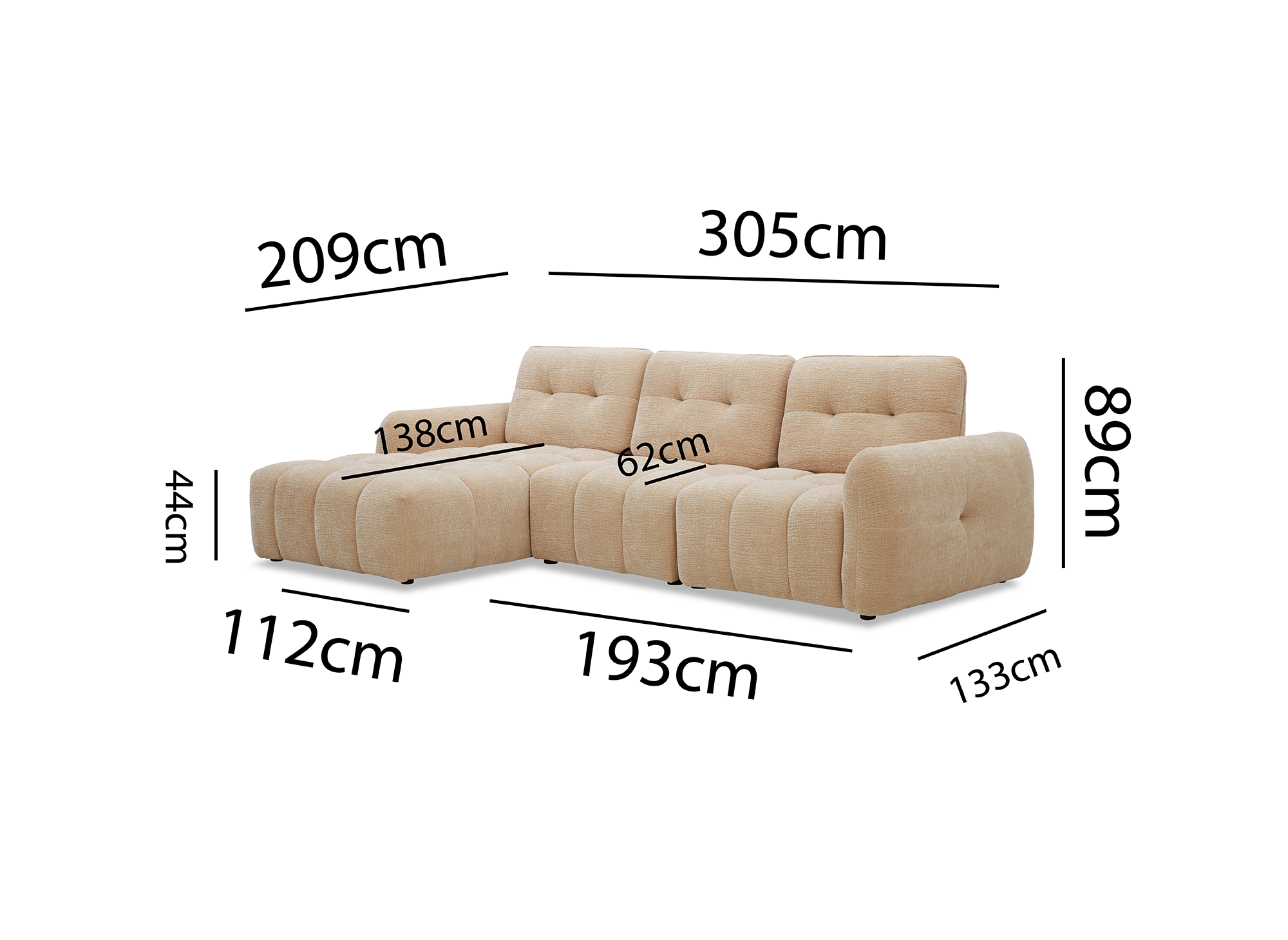 Canapé d'angle en velours tissé beige avec dossier réglable ADONIS - Angle gauche