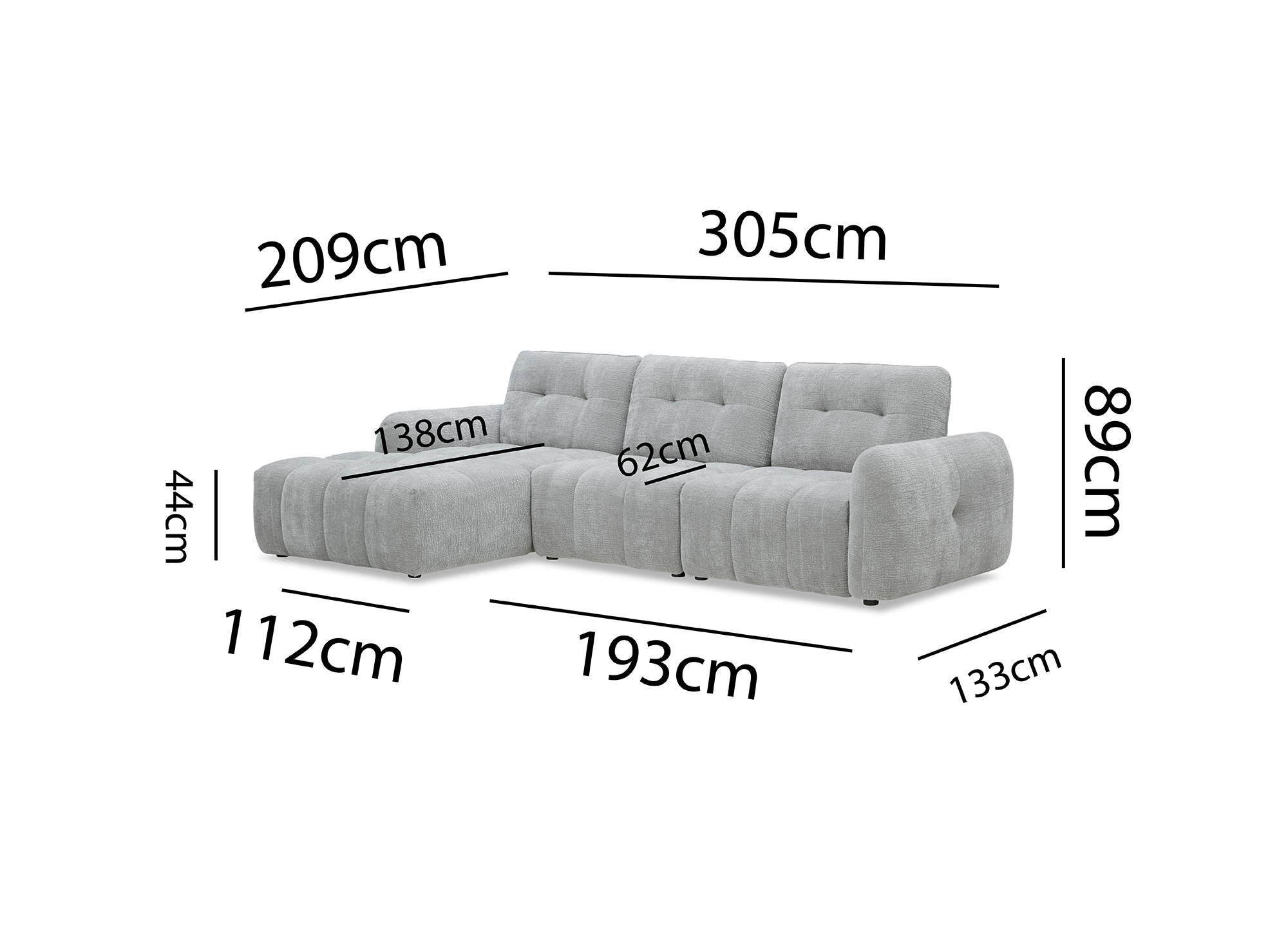 Canapé d'angle en velours tissé gris clair avec dossier réglable ADONIS - Angle gauche Prix de vente1.349,00 € Prix normal1.699,00 € - 21%