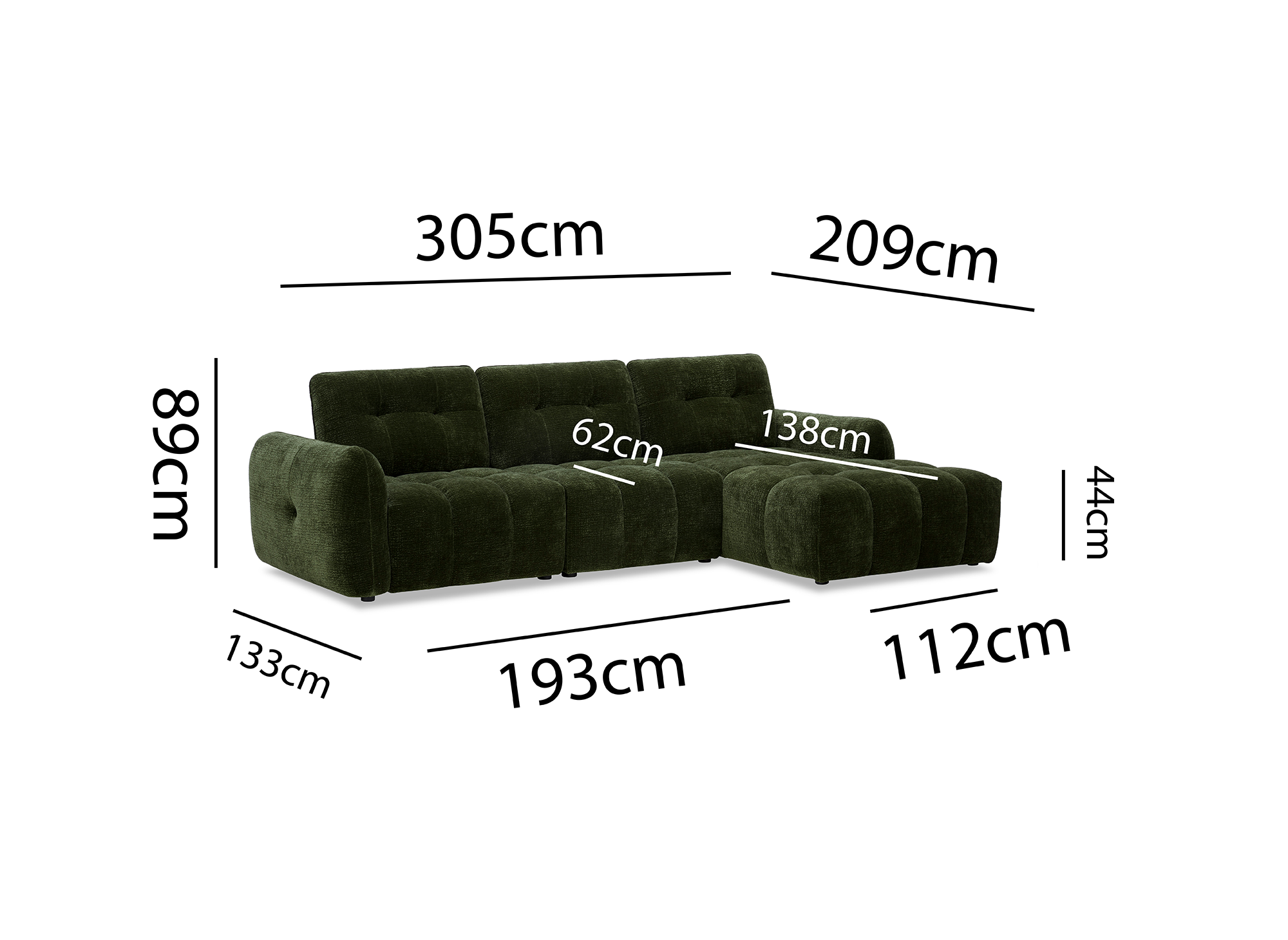 Canapé d'angle en velours tissé vert olive avec dossier réglable ADONIS - Angle droit Prix de vente1.349,00 € Prix normal1.699,00 € - 21%