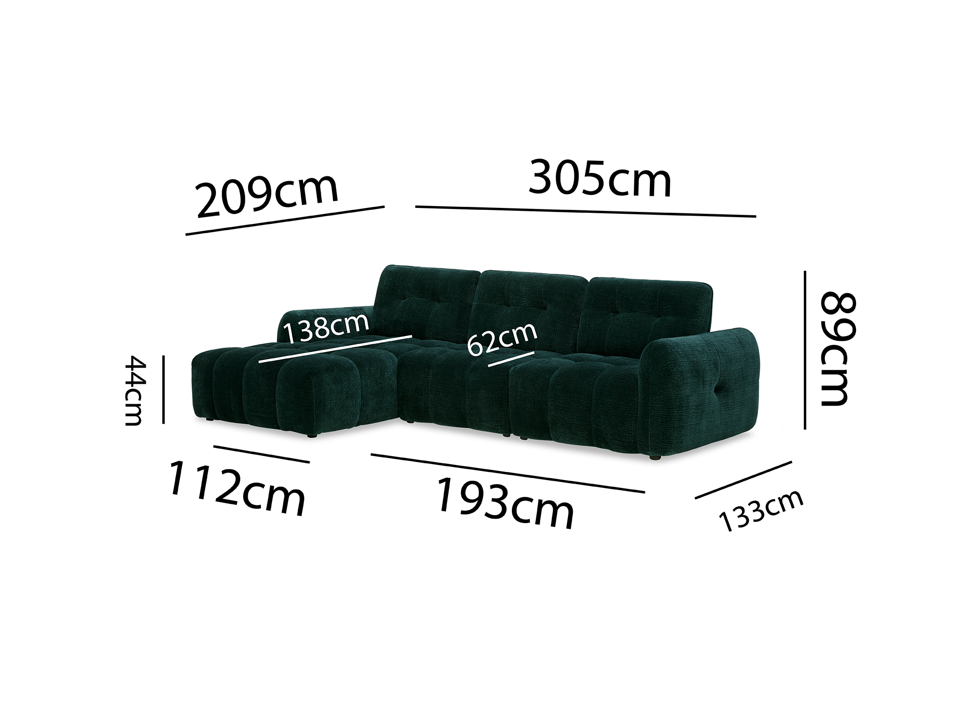 Canapé d'angle en velours tissé vert sapin avec dossier réglable ADONIS - Angle gauche