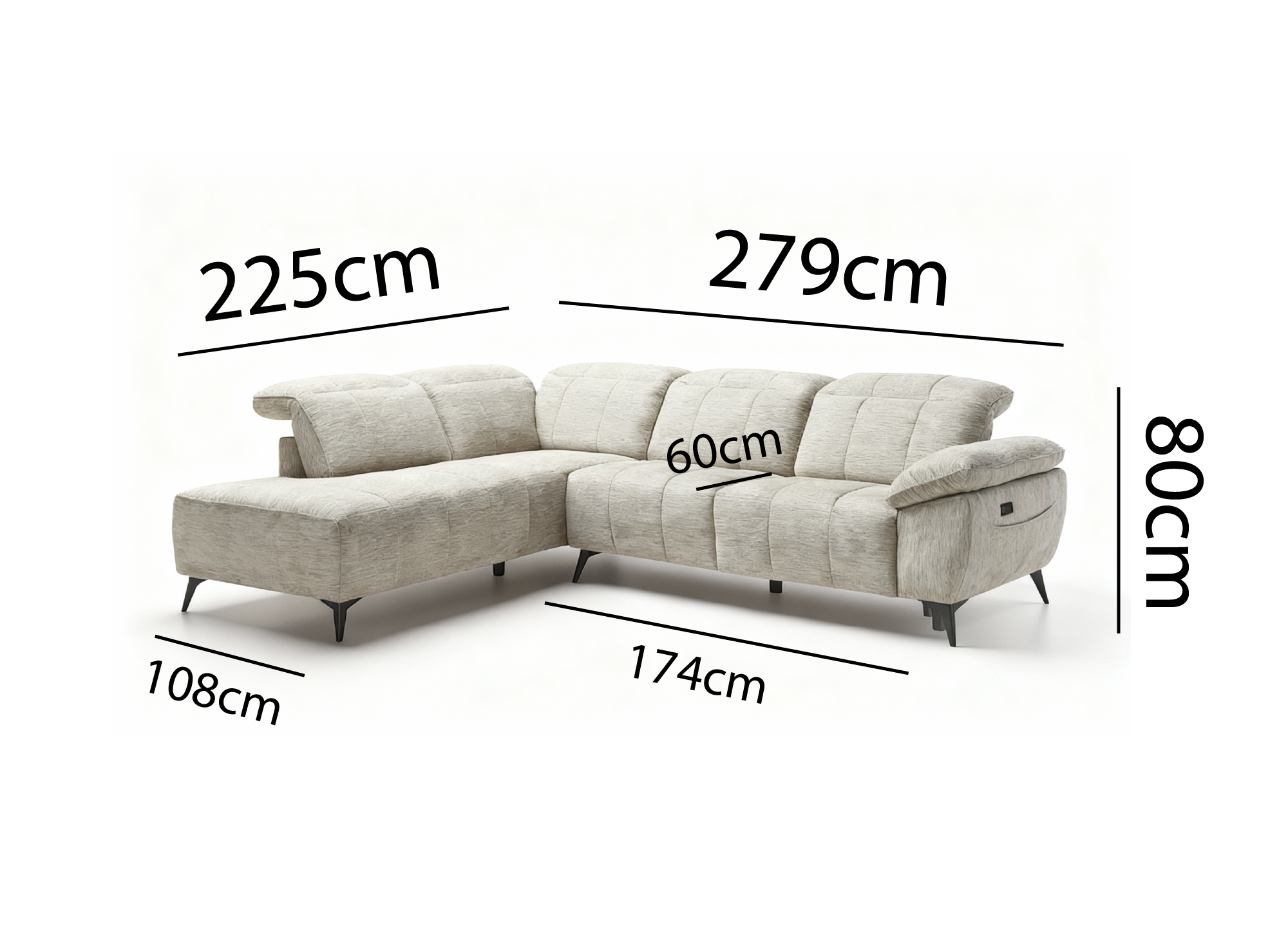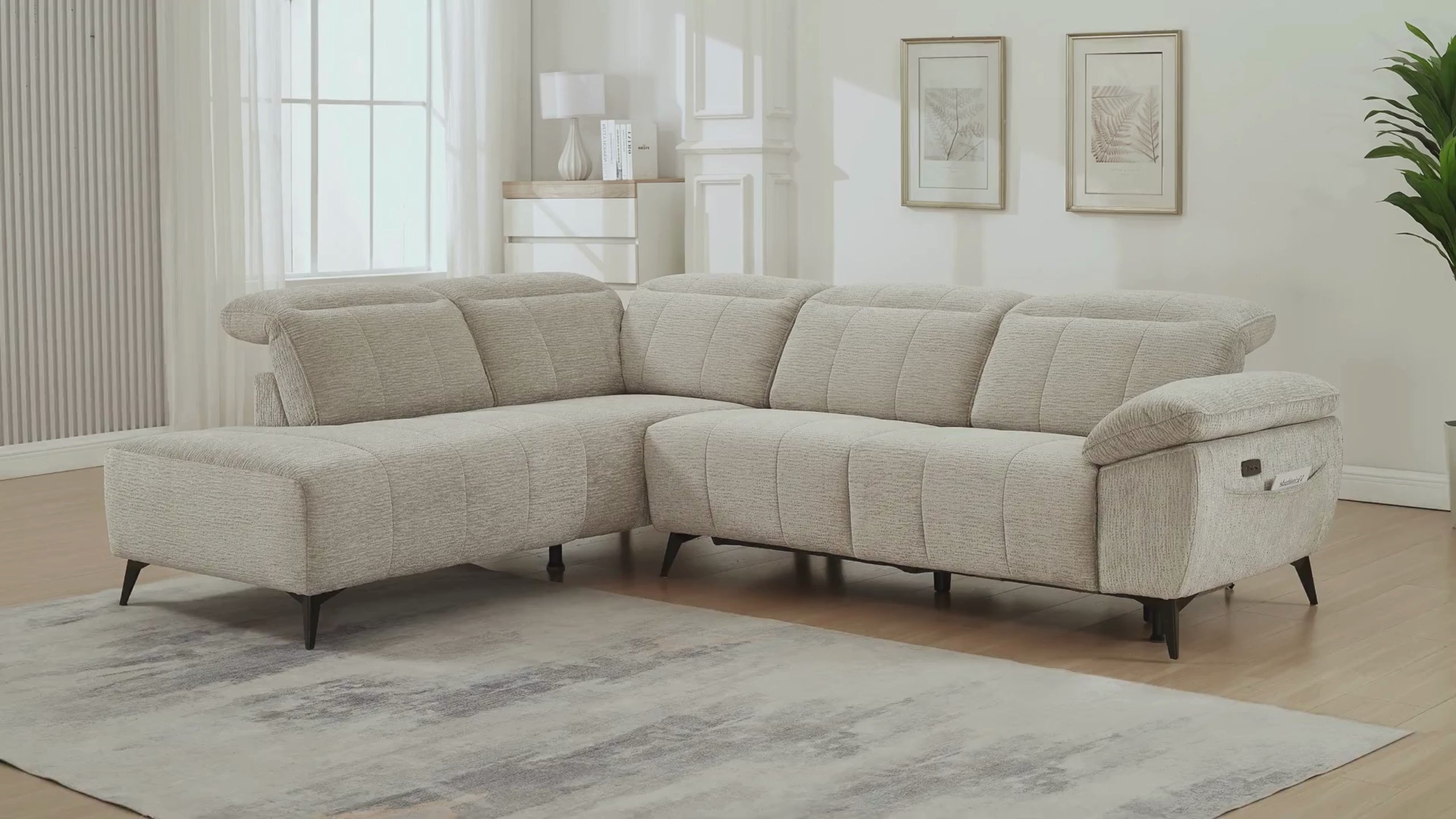 Canapé d'angle relax électrique en velours chiné beige SOLINA - Angle gauche Prix de vente1.349,00 € Prix normal1.749,00 € - 23%