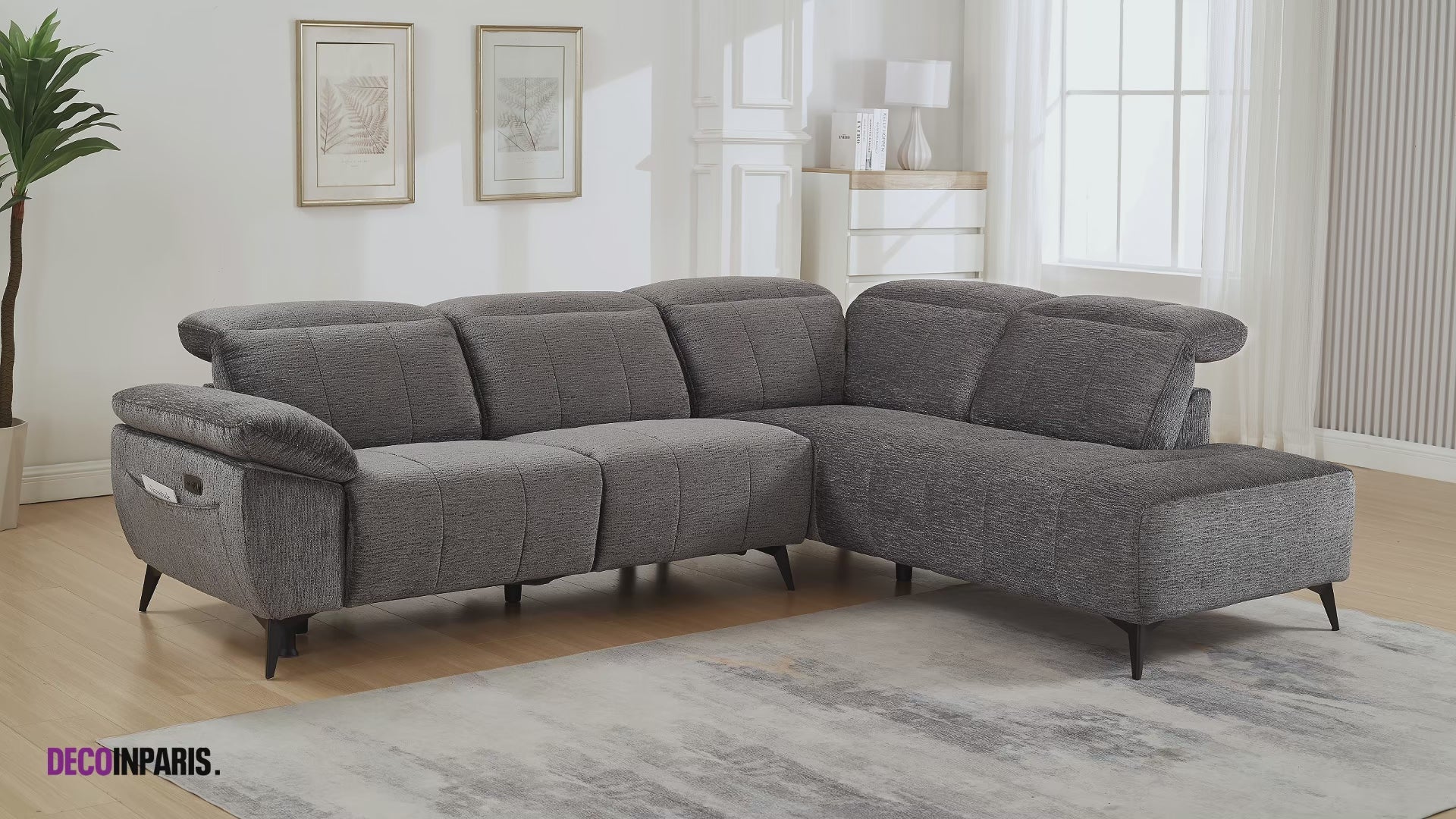 Canapé d'angle relax électrique en velours chiné gris SOLINA - Angle droit
