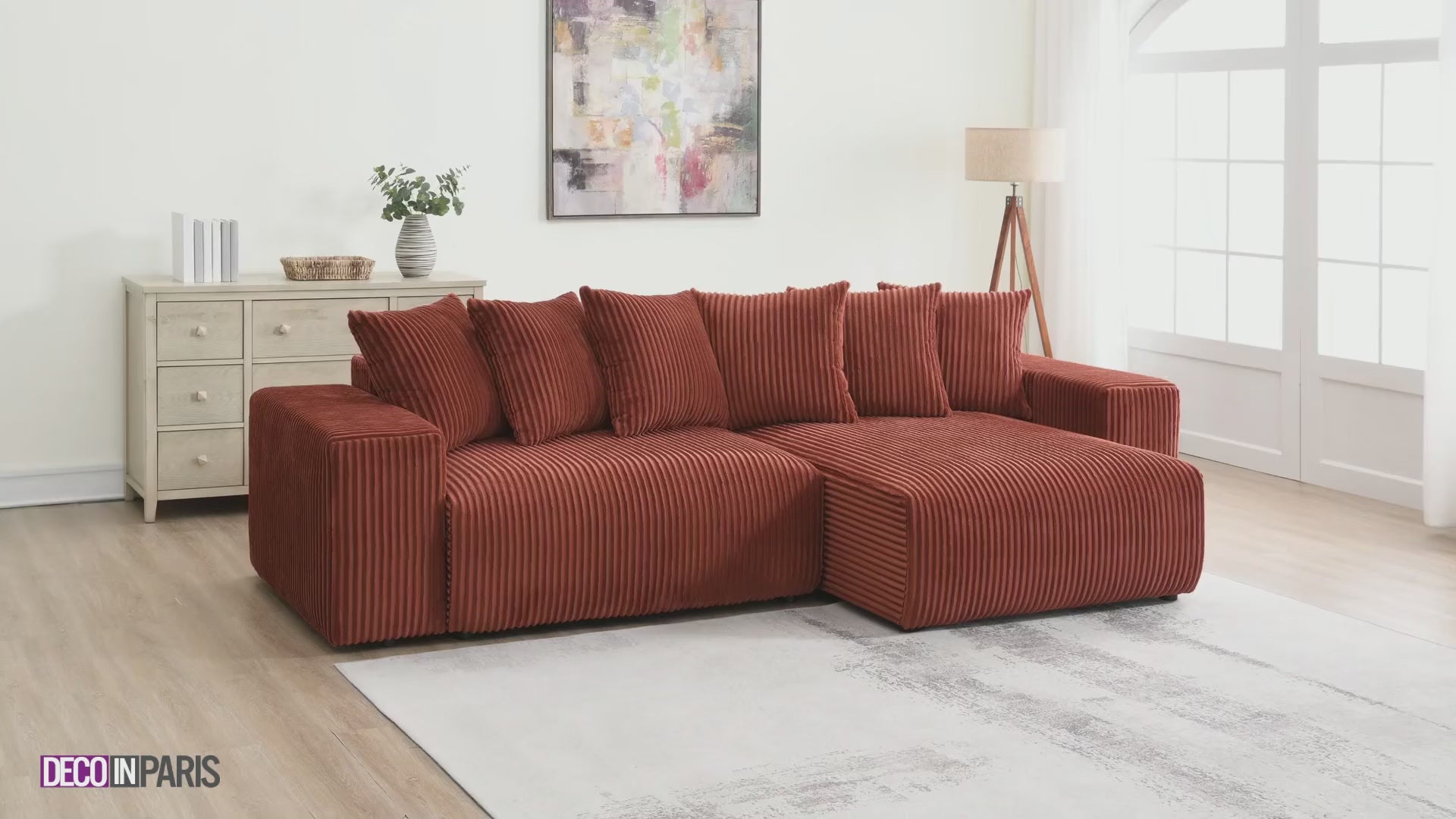 Canapé d'angle réversible convertible avec coffre en velours côtelé épais terracotta NOELIA Prix de vente999,00 € Prix normal1.399,00 € - 29%