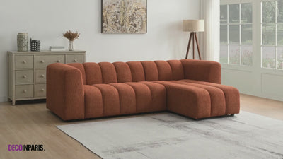 Transformez votre espace de vie avec le canapé d'angle réversible en tissu bouclette terracotta AELIS, un canapé design à la fois élégant, fonctionnel et ultra confortable. Idéal pour les salons contemporains, scandinaves ou minimalistes, ce canapé d’angle réversible en tissu bouclette incarne le parfait équilibre entre esthétique raffinée et confort quotidien.