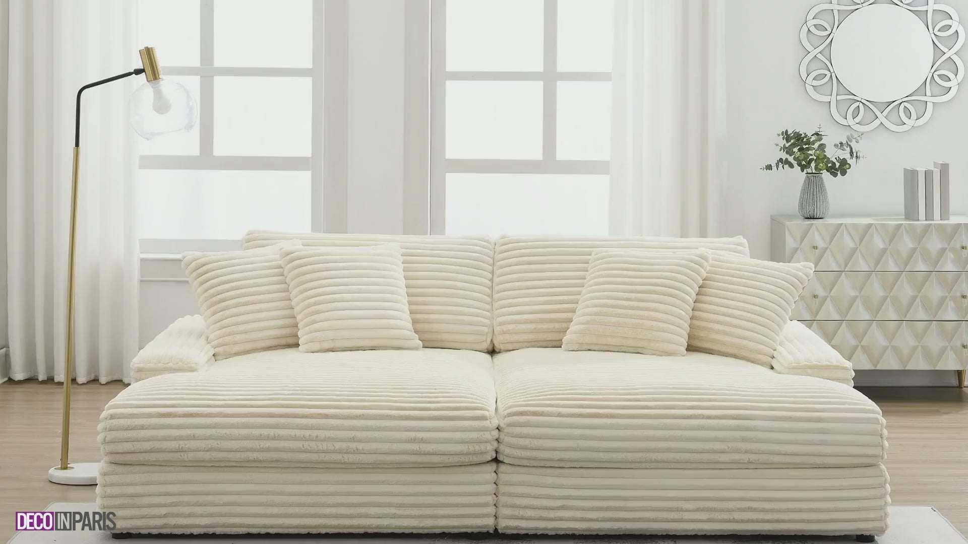 Découvrez le canapé méridienne 2 places en gros côtelé doux beige DAHO, une solution idéale pour les petits espaces.