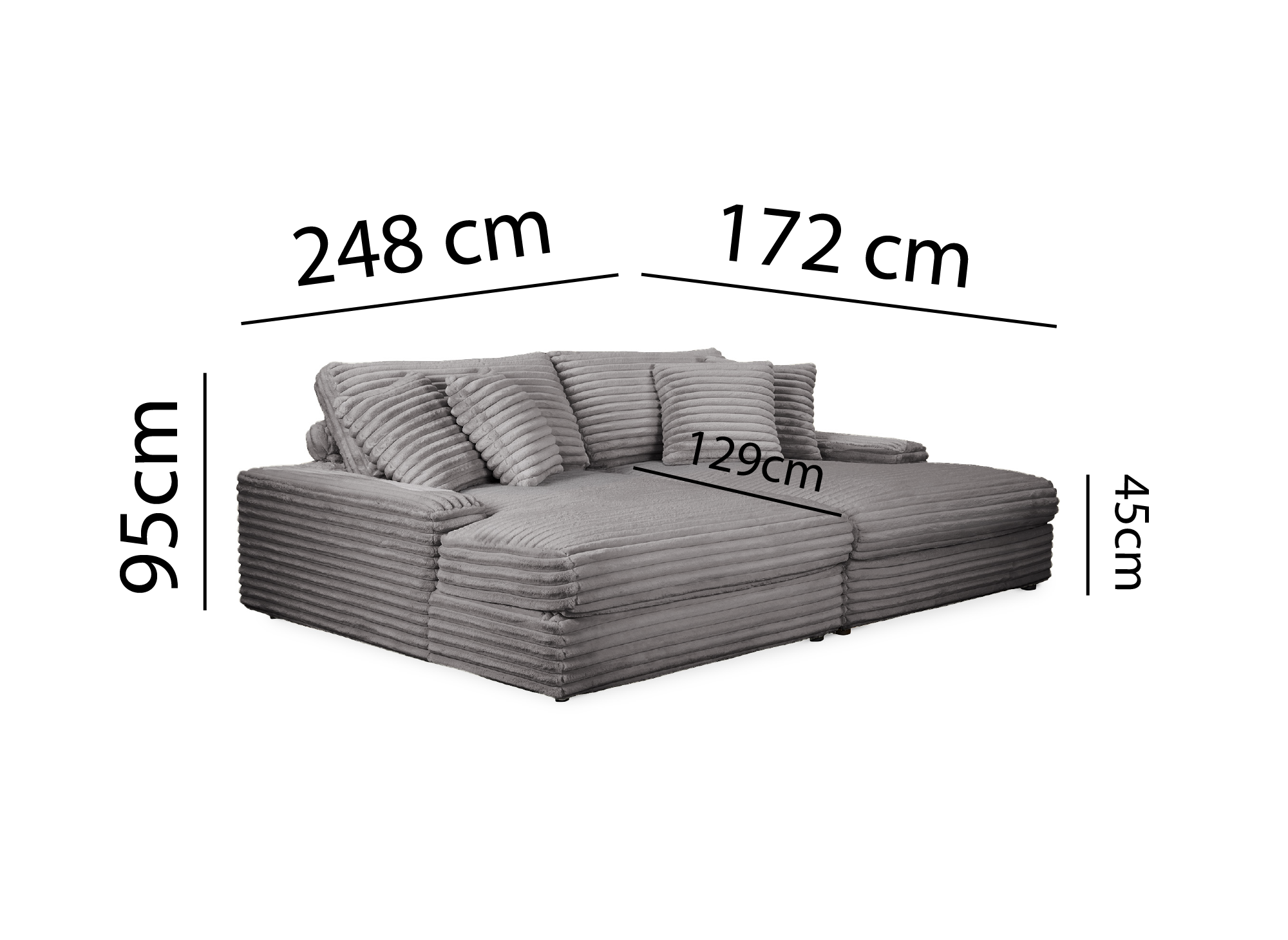 Dimensions : Largeur 248 cm x Profondeur 172 cm x Hauteur 89 cm. / Hauteur d’assise : 46 cm