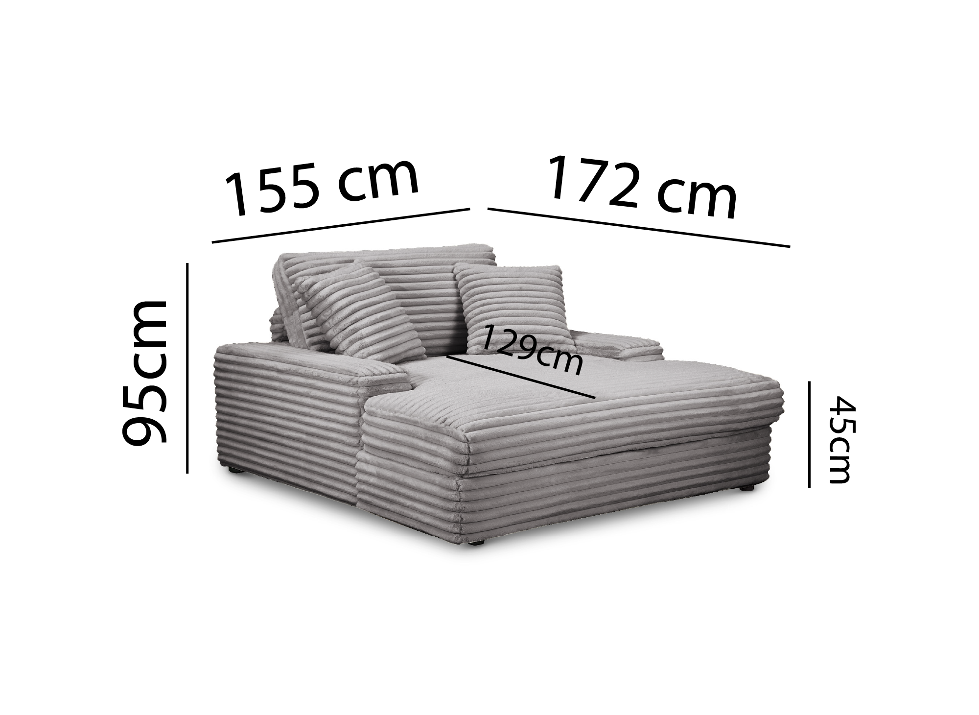 La méridienne XL DAHO se distingue par son design compact et élégant, idéal pour optimiser les petits espaces sans sacrifier le style. Le velours côtelé épais tout doux ajoute une touche de sophistication et de douceur.