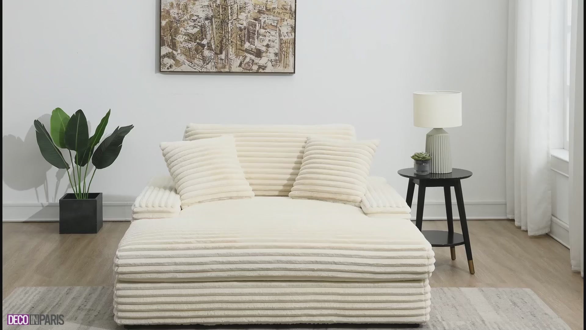 Découvrez le canapé méridienne 1 place en gros côtelé doux beige DAHO, parfaite pour les petits espaces.